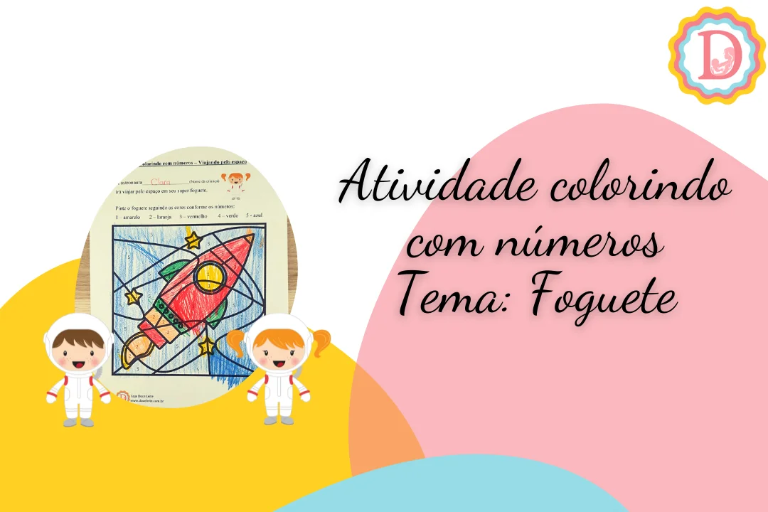 Montamos um arquivo com o desenho de um foguete e demarcamos para fazer uma pintura com números trabalhando com a criança: espaço, coordenação motora fina, percepção visual, contagem dos números de 1 ao 5.